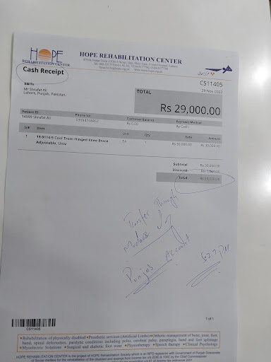 I am Orthoprosthetist myself , so very clearly know the nitty gritties of this field. Hope rehabilitation center has been serving the patients with due diligence and dedication. I hope the staff can make the best out of the resources provided to them and give the optimum services to the patients. I have personally met one of the Orthoprosthetists there name Saima ansari, a very dedicated and intelligent lady in her craft. I believe that her addition into the staff will bring more positive changes to the clinic environment.